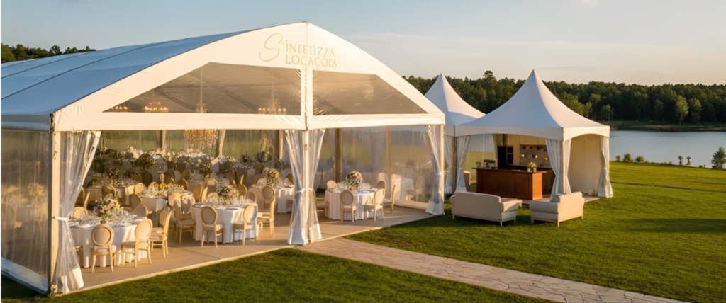 Tenha tranquilidade na garantia do seu evento, seja ele corporativo, social ou festivo. Tendas de vários modelos, medidas, inclusive sob medida. Tendas Cristal (transparentes), Tendas Sanfonadas, Chapéu de Bruxa, para todos os tipos de eventos, inclusive casamentos.